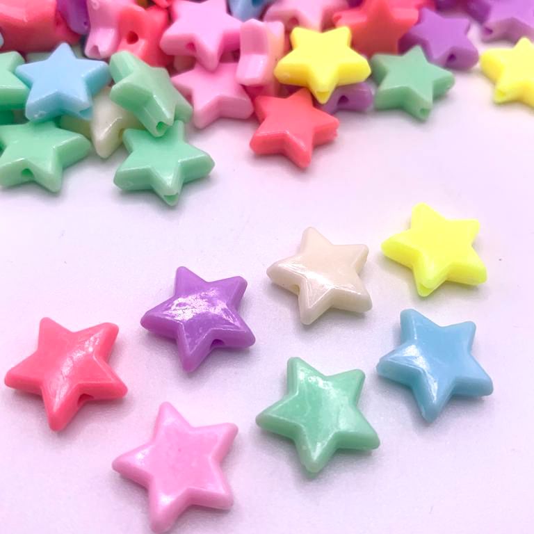 Miçanga infantil estrela candy color 14mm com 100g, ideal para a confecção de itens de artesanato como colares, pulseiras, terços, tornozeleira e artesanatos em geral.